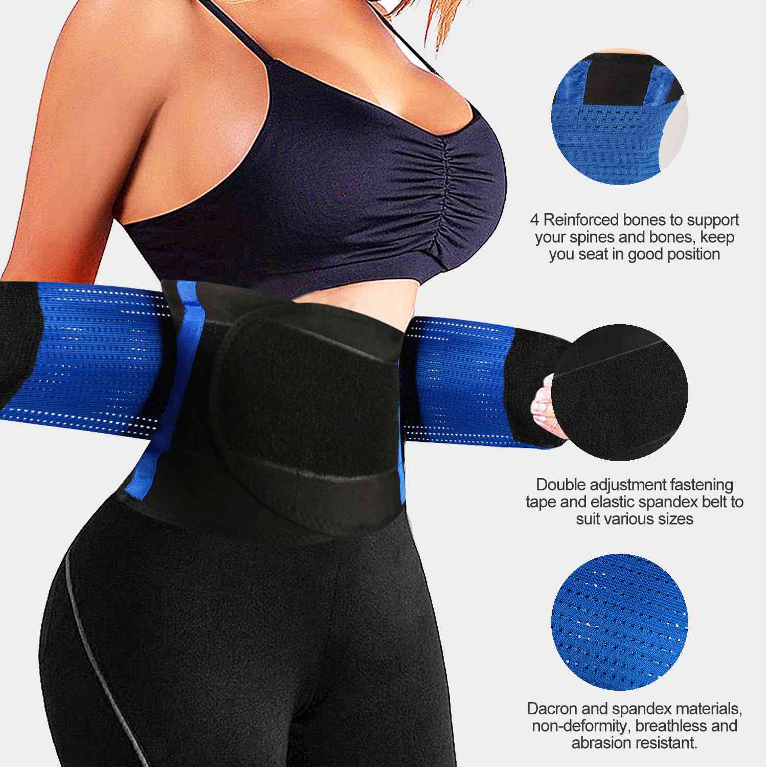 Are you still disturbed by your flabby waistlines? Are your back and spines sores after a whole day working? Do you want to be the most outstanding one among your friends when you attend a party, a club or a wedding? If yes, our waist belt can help you. Adopts polyester & spandex materials, rebound easily non-deformity, breathless and abrasion-resistant. Designed with 4 reinforced bones encased in heavy canvas and u-shaped style, provides much supports to your back and spines, and rectify your wrong sitting posture. It targets your midsection with abdominal compression to increase heat and accelerate burn targeted fat in the process of sports. Widely used during works, workout sports, fitness excise, or even post c-section surgery, postpartum support. An optimal gift to her