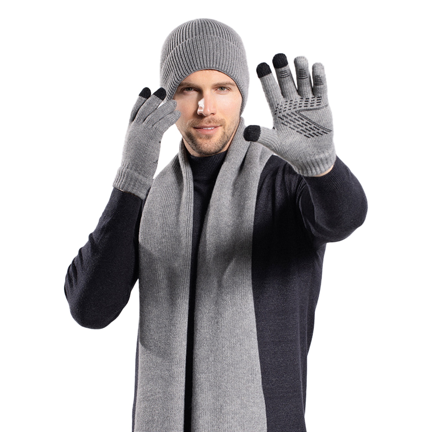 Home > Winter Knitted Hat Scarf Gloves 3Pcs Winter Warm Beanie and Touch Screen Gloves Long Neck Scarf Set Knit Beanie Skull Cap Neck Warmer Anti-Slip Mitten