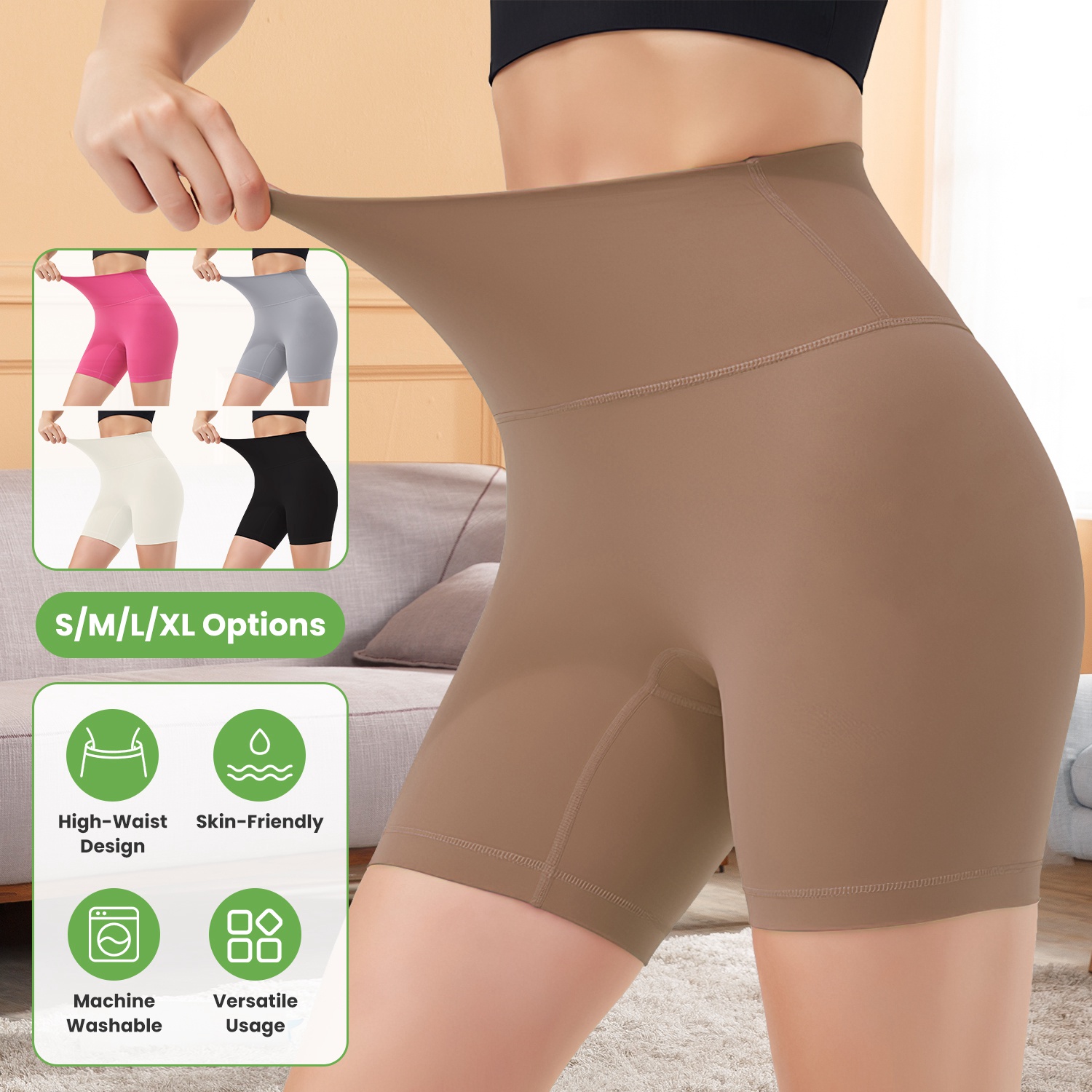 Our high-waist biker shorts made from 80% Polyamide and 20% Elastane, give you freedom of movement no matter what you’re doing and provide you with the most comfortable feelings and elegance all the time. The widened high waisted band is great to provide sturdy support to help your tummy control and cover navel. A straight seam on the buttock is great to contour your curves. And no front seam design ensures smooth lines and added comfort. Super soft, skin-friendly, stretchable and moisture-wicking, ensuring ease of movement. Optimal for cycling, workouts, yoga, and everyday fashion. Pink, Grey, Coffee, Ivory, Black is available to choose as you need.
