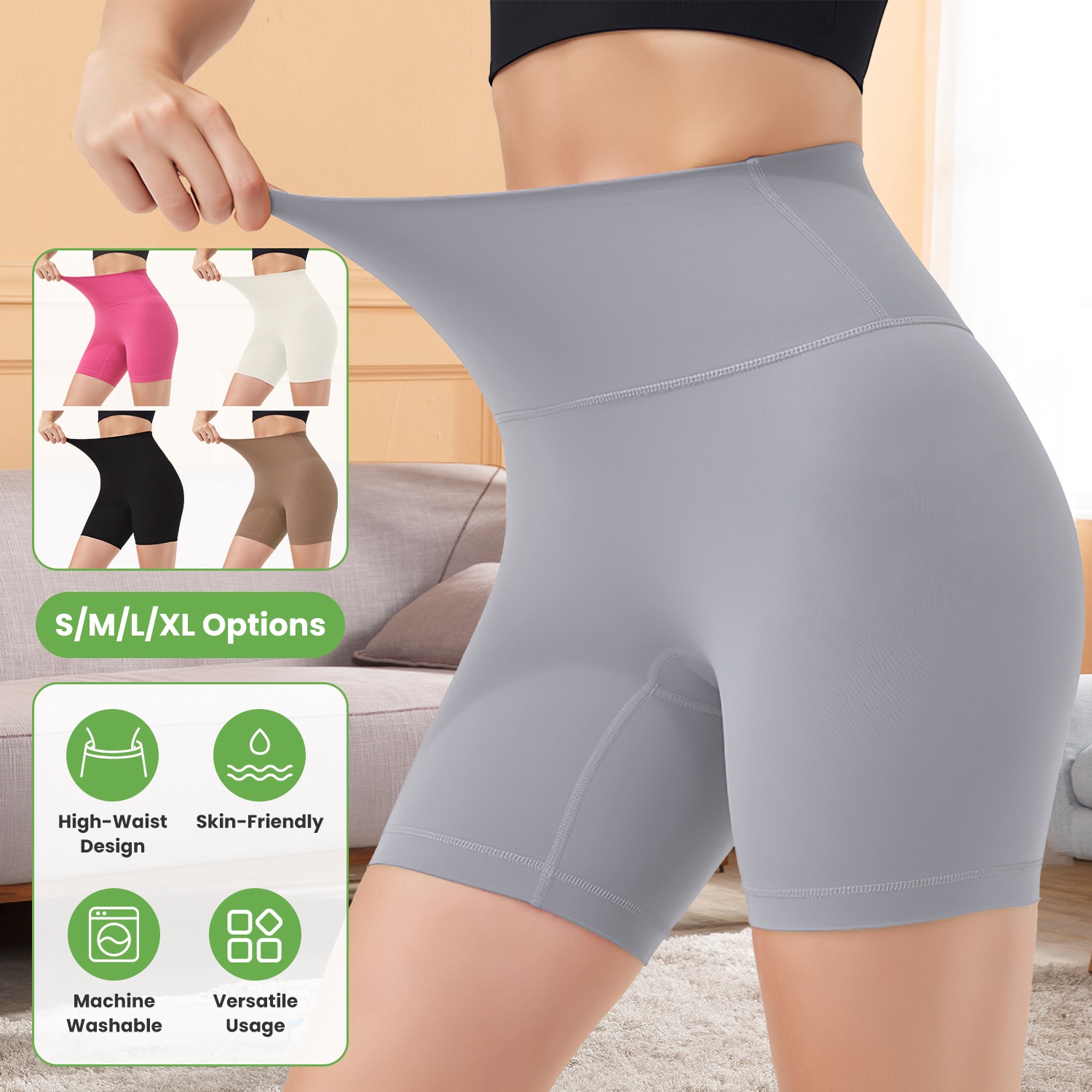 Our high-waist biker shorts made from 80% Polyamide and 20% Elastane, give you freedom of movement no matter what you’re doing and provide you with the most comfortable feelings and elegance all the time. The widened high waisted band is great to provide sturdy support to help your tummy control and cover navel. A straight seam on the buttock is great to contour your curves. And no front seam design ensures smooth lines and added comfort. Super soft, skin-friendly, stretchable and moisture-wicking, ensuring ease of movement. Optimal for cycling, workouts, yoga, and everyday fashion. Pink, Grey, Coffee, Ivory, Black is available to choose as you need.