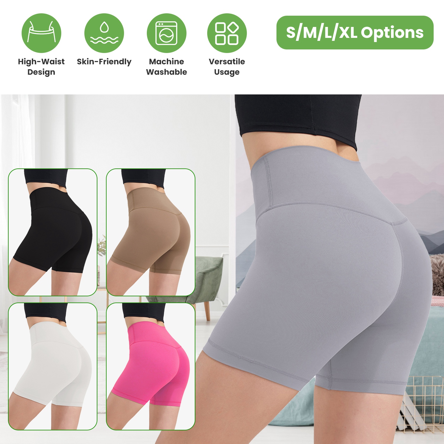 Our high-waist biker shorts made from 80% Polyamide and 20% Elastane, give you freedom of movement no matter what you’re doing and provide you with the most comfortable feelings and elegance all the time. The widened high waisted band is great to provide sturdy support to help your tummy control and cover navel. A straight seam on the buttock is great to contour your curves. And no front seam design ensures smooth lines and added comfort. Super soft, skin-friendly, stretchable and moisture-wicking, ensuring ease of movement. Optimal for cycling, workouts, yoga, and everyday fashion. Pink, Grey, Coffee, Ivory, Black is available to choose as you need.