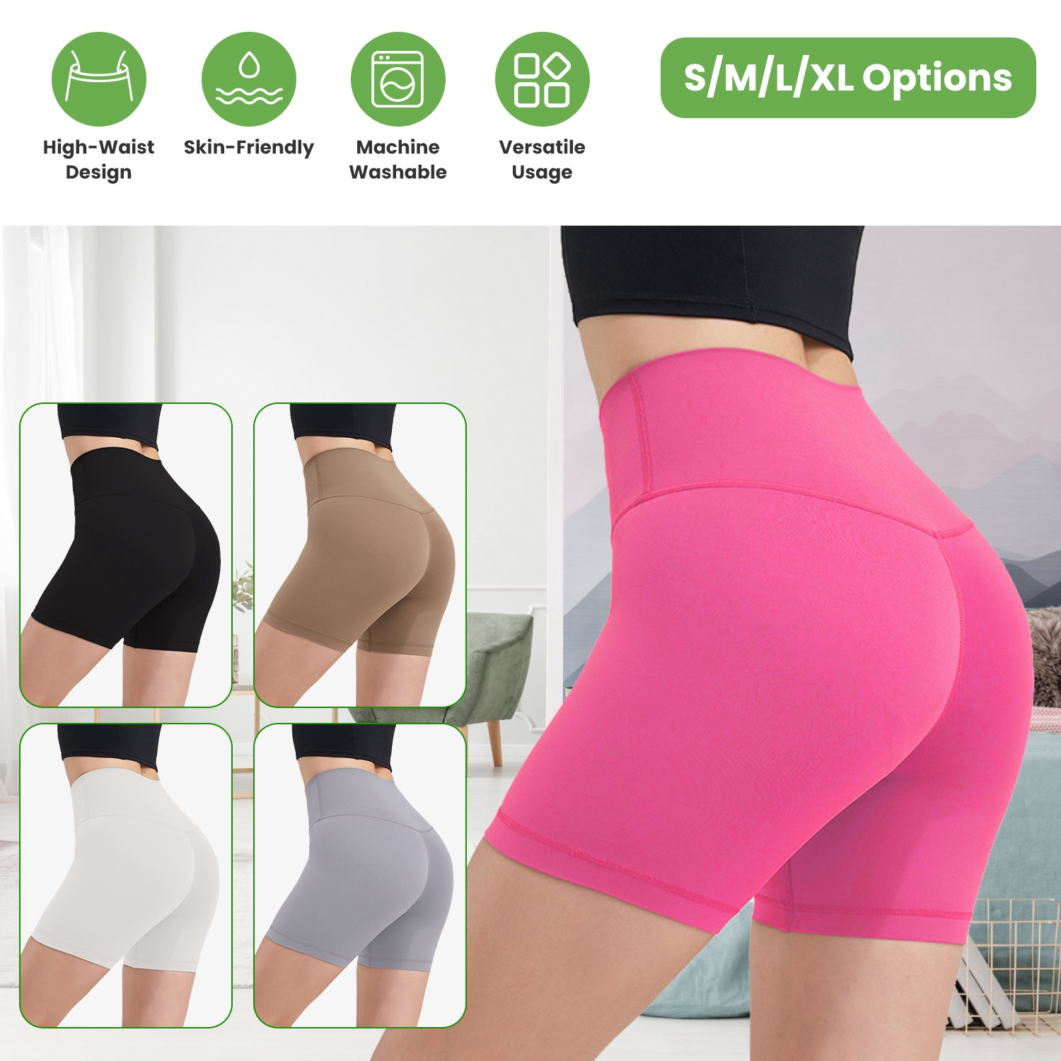 Our high-waist biker shorts made from 80% Polyamide and 20% Elastane, give you freedom of movement no matter what you’re doing and provide you with the most comfortable feelings and elegance all the time. The widened high waisted band is great to provide sturdy support to help your tummy control and cover navel. A straight seam on the buttock is great to contour your curves. And no front seam design ensures smooth lines and added comfort. Super soft, skin-friendly, stretchable and moisture-wicking, ensuring ease of movement. Optimal for cycling, workouts, yoga, and everyday fashion. Pink, Grey, Coffee, Ivory, Black is available to choose as you need.