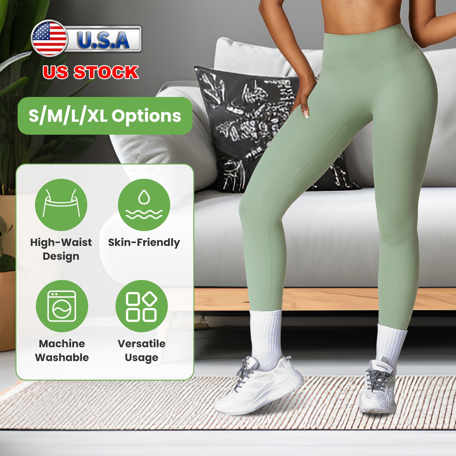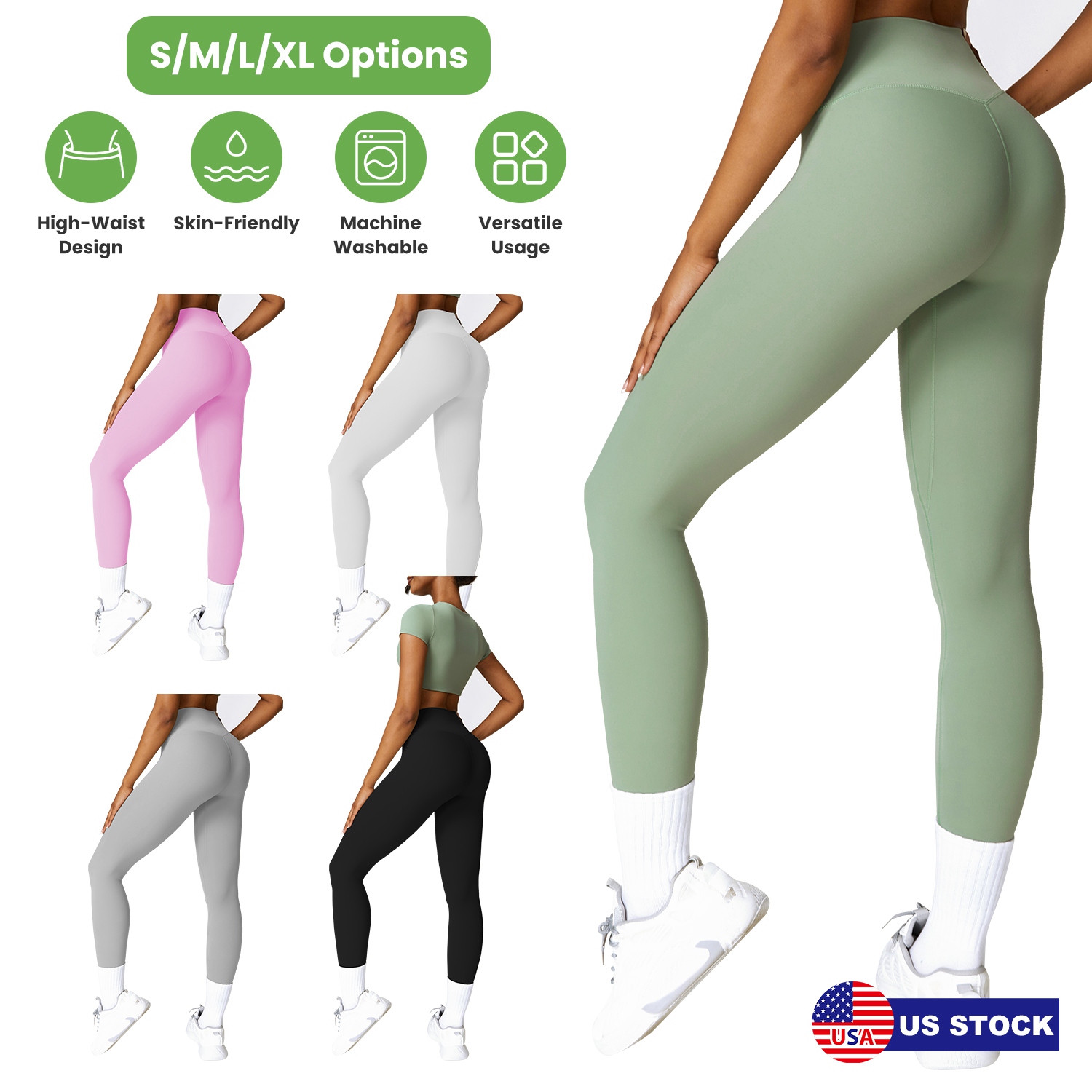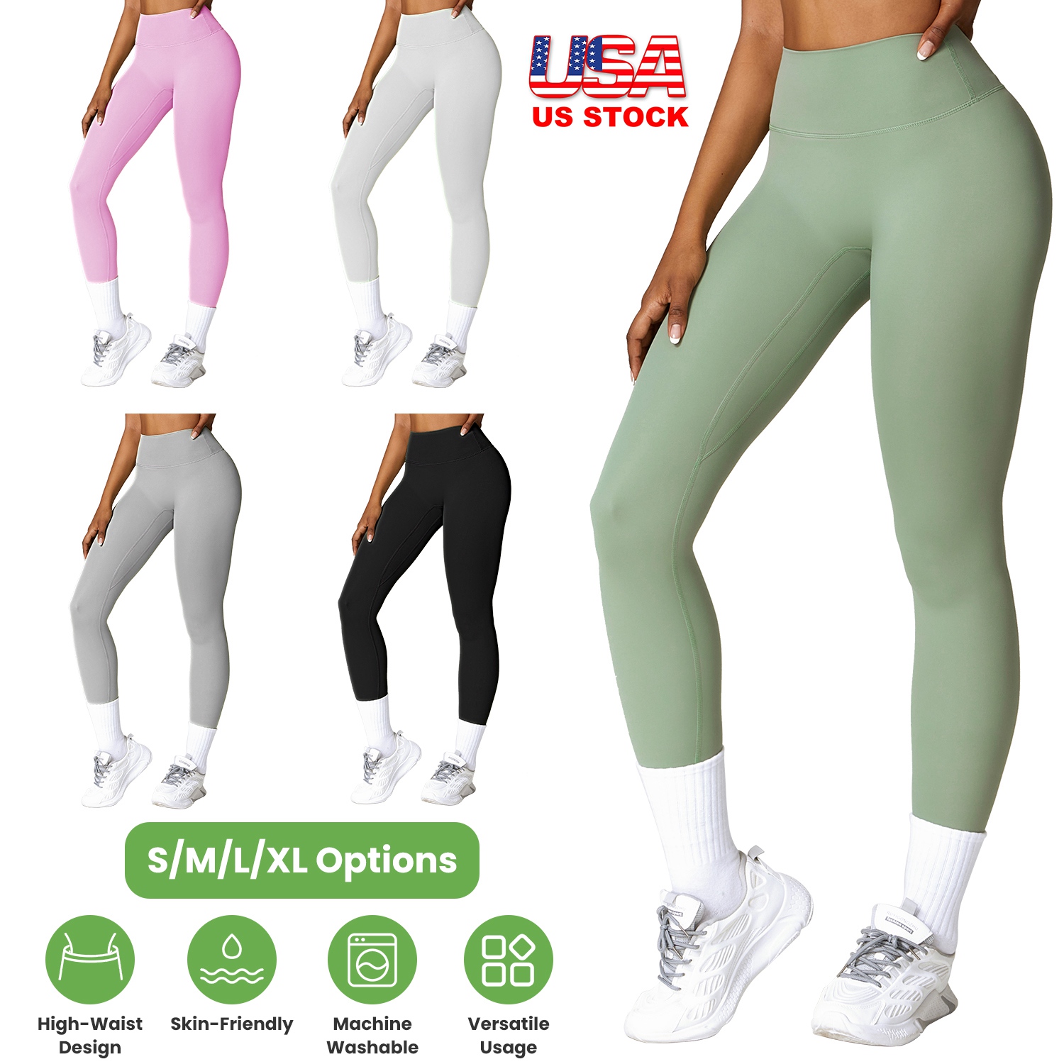 Our high-waist Yoga Leggings made from 78% Polyamide and 22% Elastane, give you freedom of movement no matter what you’re doing and provide you with the most comfortable feelings and elegance all the time. The widened high waisted band is great to provide sturdy support to help your tummy control and cover navel. A straight seam on the buttock is great to contour your curves. And the double seams on the gusset crotch and inseam are able to provide enough compression to keep your thigh flab held in the right places. Super soft, skin-friendly, stretchable and moisture-wicking, ensuring ease of movement. Fit for Yoga, Workout, Fitness, and Daily Wear. Match with anything from dresses to sweaters to create a look that shows off your sense of fashion. Pink, Pearl Grey, Green, Grey, Black is available to choose as you need.