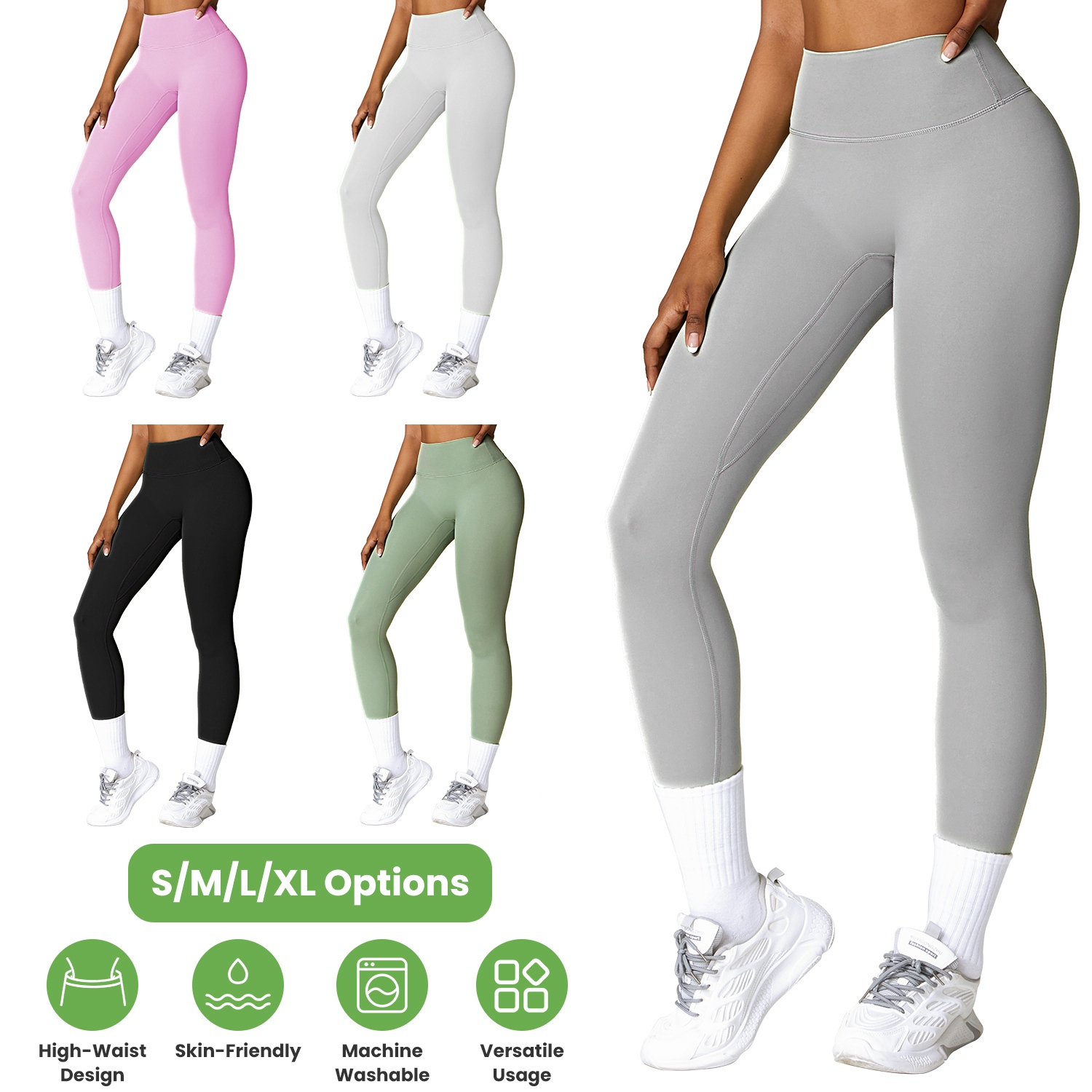 Our high-waist Yoga Leggings made from 78% Polyamide and 22% Elastane, give you freedom of movement no matter what you’re doing and provide you with the most comfortable feelings and elegance all the time. The widened high waisted band is great to provide sturdy support to help your tummy control and cover navel. A straight seam on the buttock is great to contour your curves. And the double seams on the gusset crotch and inseam are able to provide enough compression to keep your thigh flab held in the right places. Super soft, skin-friendly, stretchable and moisture-wicking, ensuring ease of movement. Fit for Yoga, Workout, Fitness, and Daily Wear. Match with anything from dresses to sweaters to create a look that shows off your sense of fashion. Pink, Pearl Grey, Green, Grey, Black is available to choose as you need.