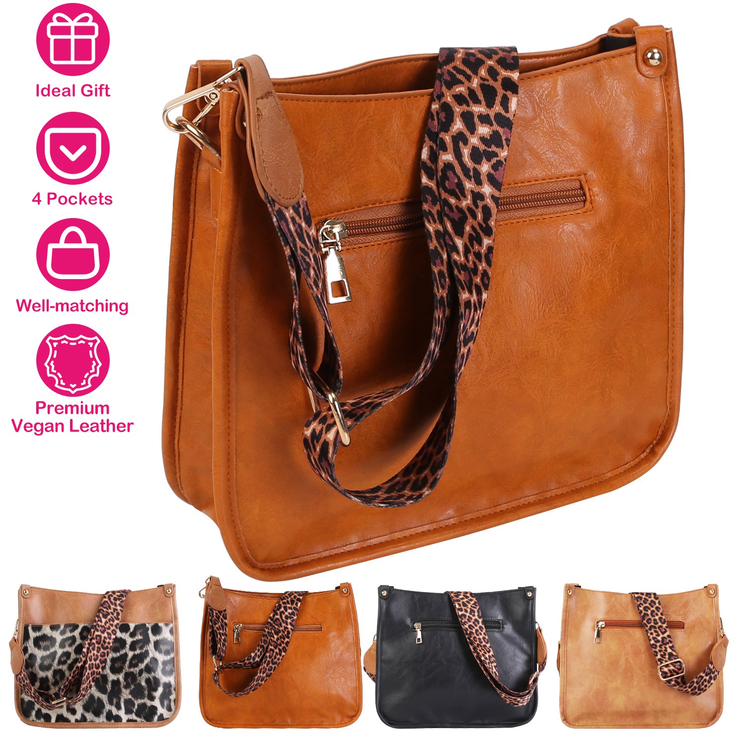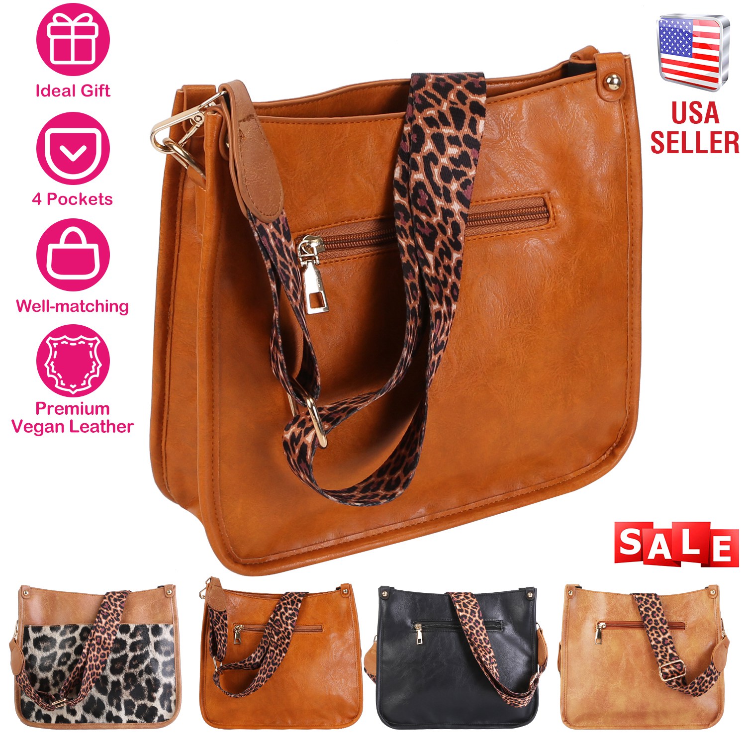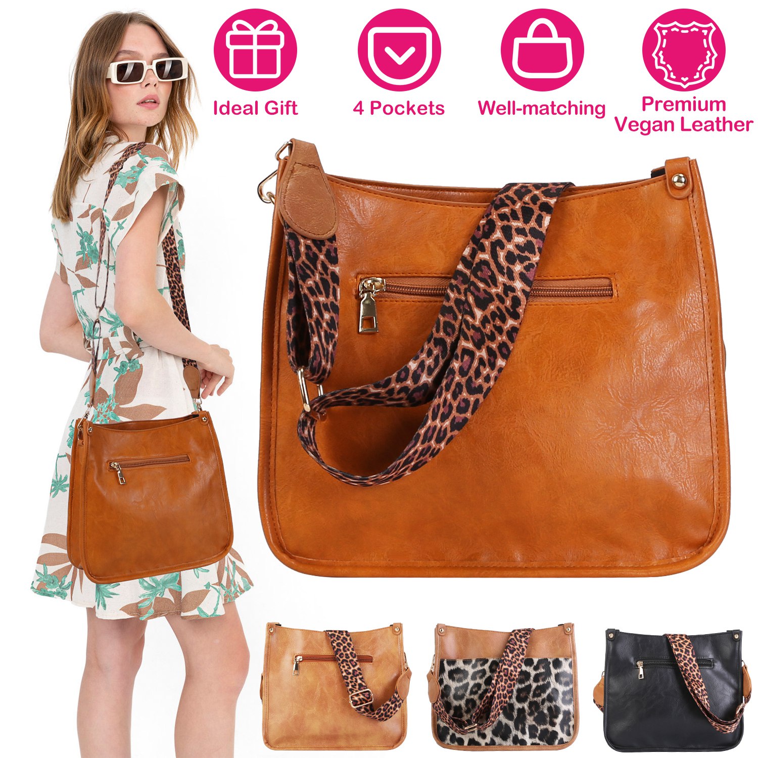 Home > Women Fashion Leather Crossbody Bag Shoulder Bag Casual Handbag with Flexible Wearing Styles Adjustable Guitar Strap