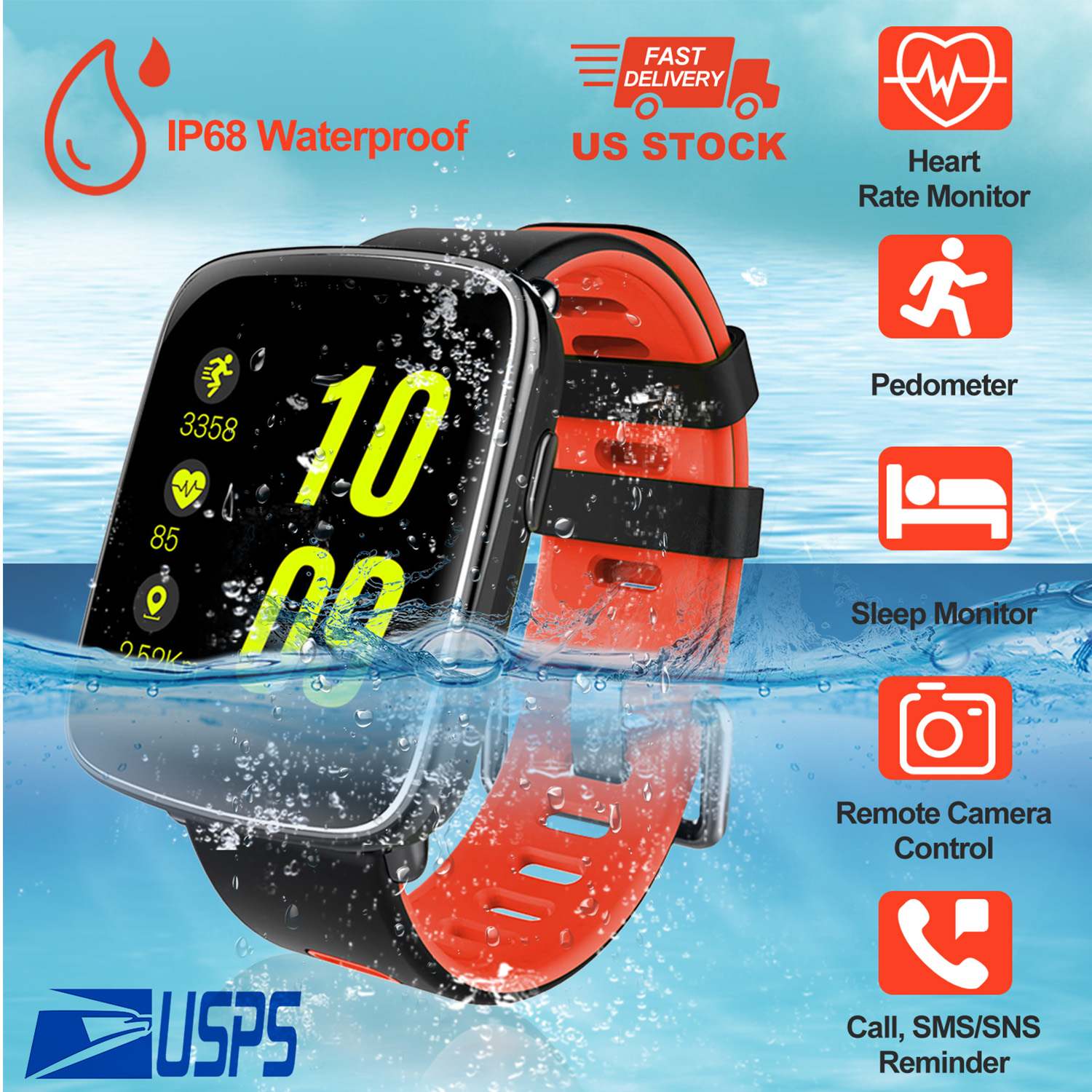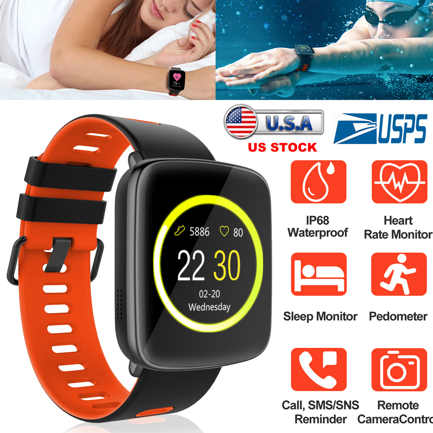 Not just a digital watch. This smart watch combines the benefits of fitness band, health monitor, and wireless function, including but not limited to social APPs push, count steps, monitor sleeping patterns, remote camera control, and etc.. Excellent waterproof performance allows you to wear it while swimming. Keep track of your health and fitness all day long. A personal trainer, assistant, on your wrist!