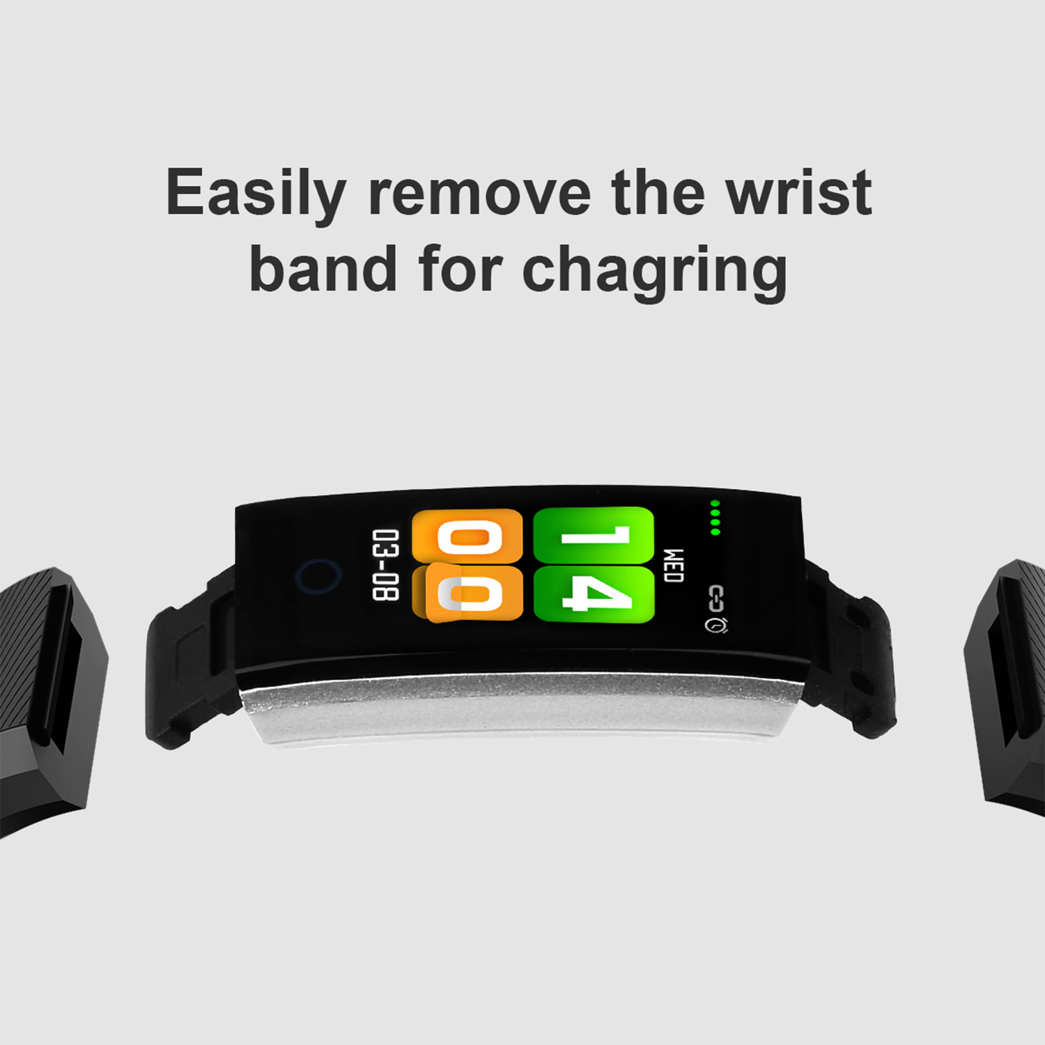 Adjust yourself for a healthier lifestyle with our 0.96'' fitness tracker! It can automatically record your all-day activity tracker such as heart rate monitor, blood pressure and blood oxygen monitor, pedometer, sleep monitor as well as provide sedentary reminder, etc.. With V4.0 wireless technology, after paring with smartphones with Android 5.1 and above or iOS 8.0 and above system, it can realize functions such as remote camera control, messaging-notifying, smartphone finding, etc.. Additionally, it is IP67 waterproof to remove worries about hands washing, splashing, sweating, rainy, etc. And after about 2 hours full charge via USB charging contact, 25 days standby time. Premium TPU wristband offers you comfortable wearing experience.
