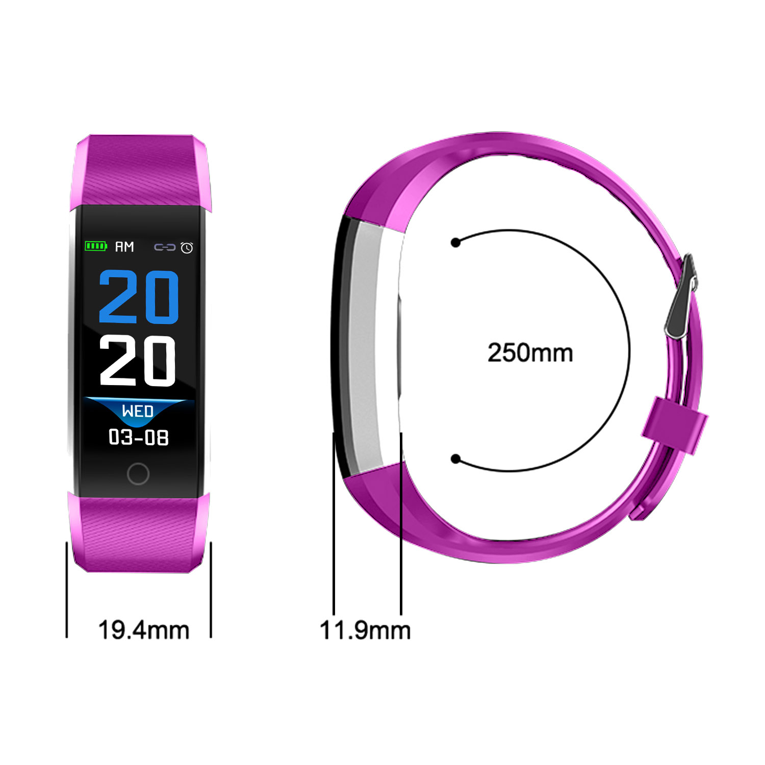 Adjust yourself for a healthier lifestyle with our 0.96'' fitness tracker! It can automatically record your all-day activity tracker such as heart rate monitor, blood pressure and blood oxygen monitor, pedometer, sleep monitor as well as provide sedentary reminder, etc.. With V4.0 wireless technology, after paring with smartphones with Android 5.1 and above or iOS 8.0 and above system, it can realize functions such as remote camera control, messaging-notifying, smartphone finding, etc.. Additionally, it is IP67 waterproof to remove worries about hands washing, splashing, sweating, rainy, etc. And after about 2 hours full charge via USB charging contact, 25 days standby time. Premium TPU wristband offers you comfortable wearing experience.