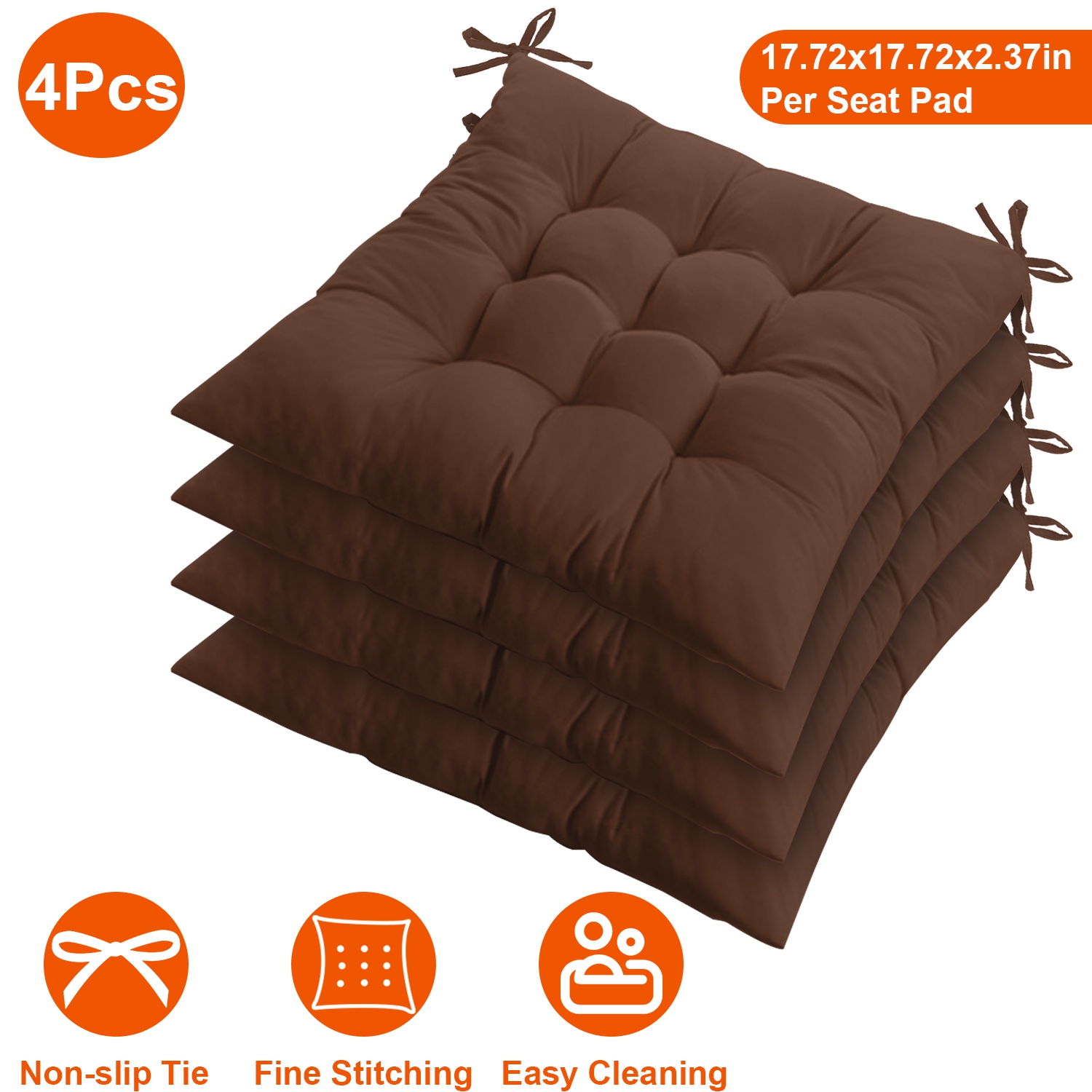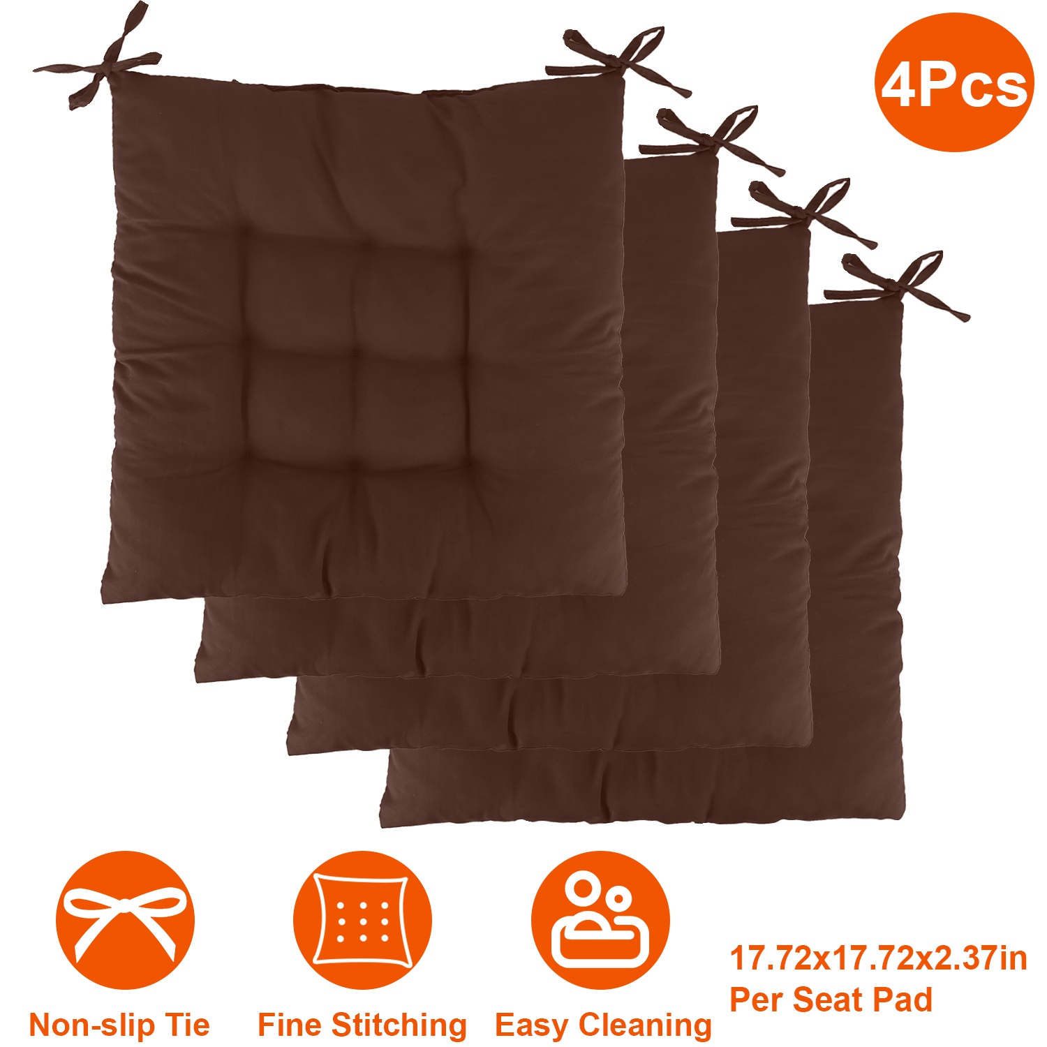 Home > 4Pcs Chair Cushion Pads Pillow 17.72x17.72x2.37in Soft Tie On Square Sitting Mats For Home Office Car Sitting Travel