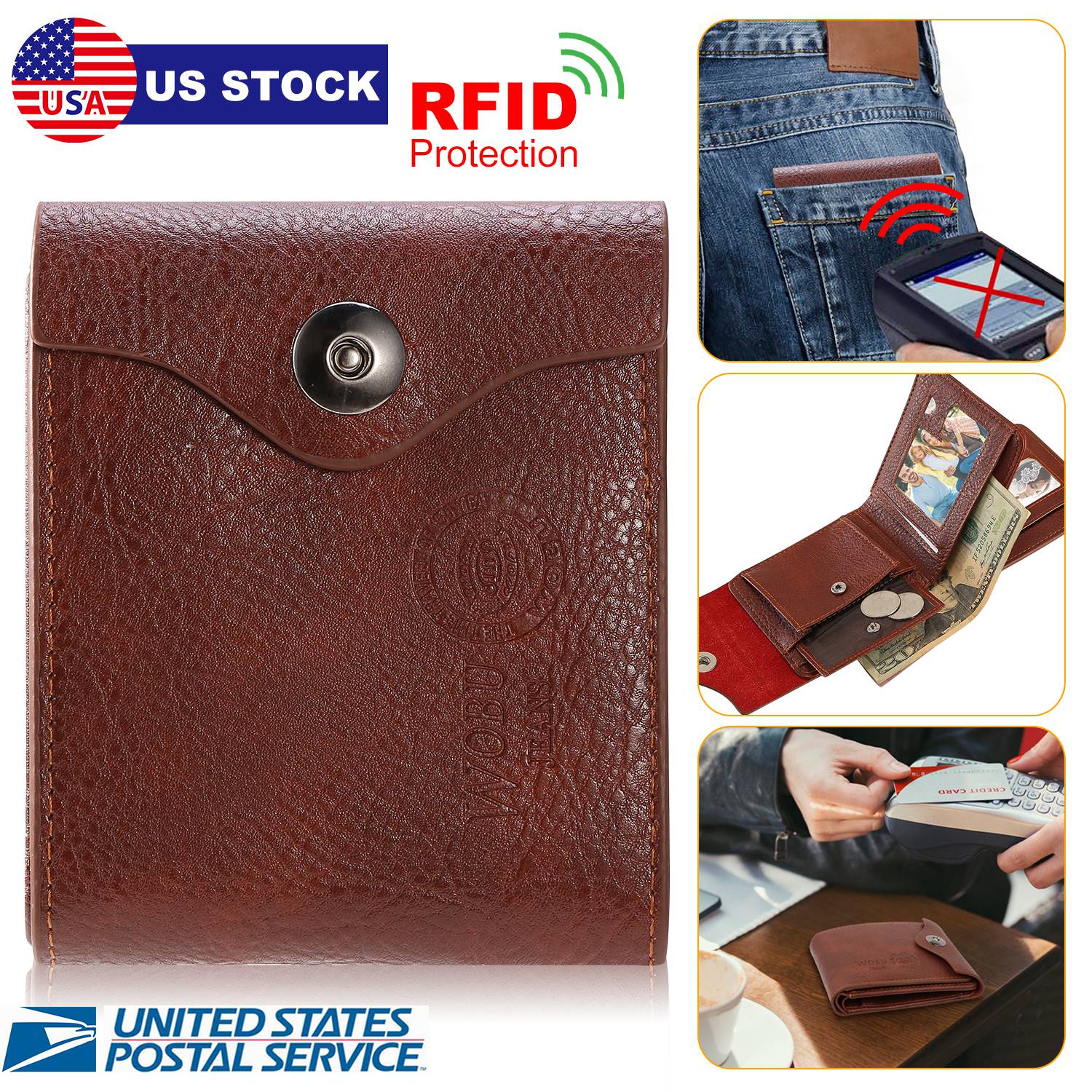 Men’s Wallet PU Leather Bifold Purse Slim RFID Blocking Card Holder Cases w/ 2 ID Window Coin Pocket