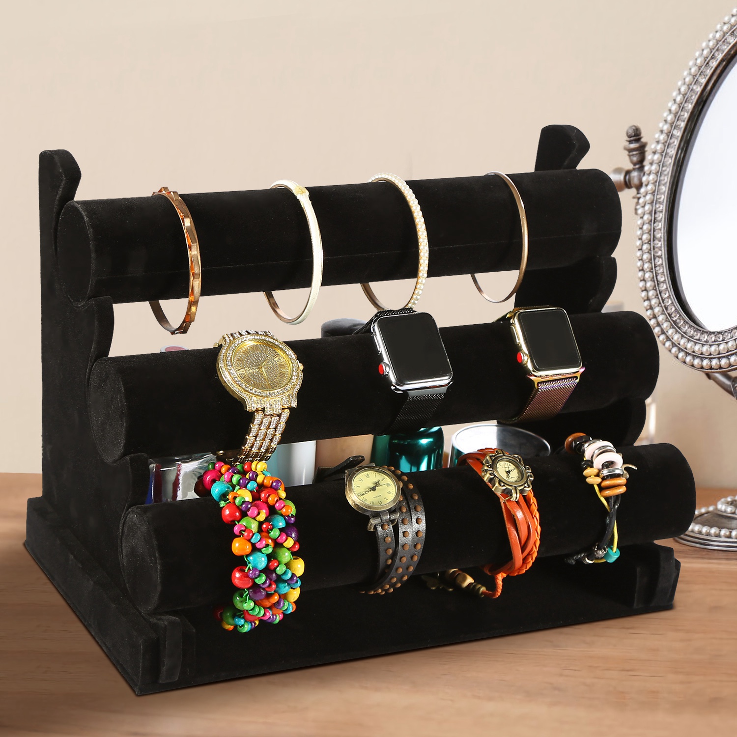 Home > 3-Tier Velvet Jewelry Stand Removable Bracelet Holder Watch Jewelry Bangle Display Rack