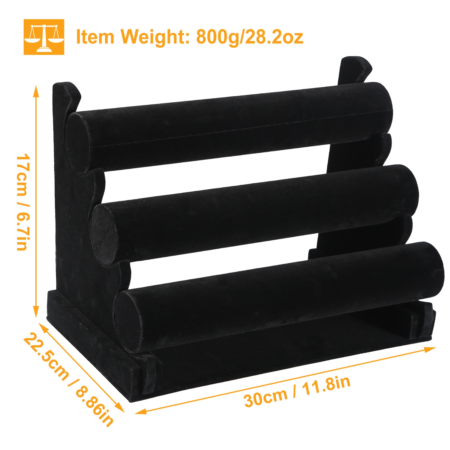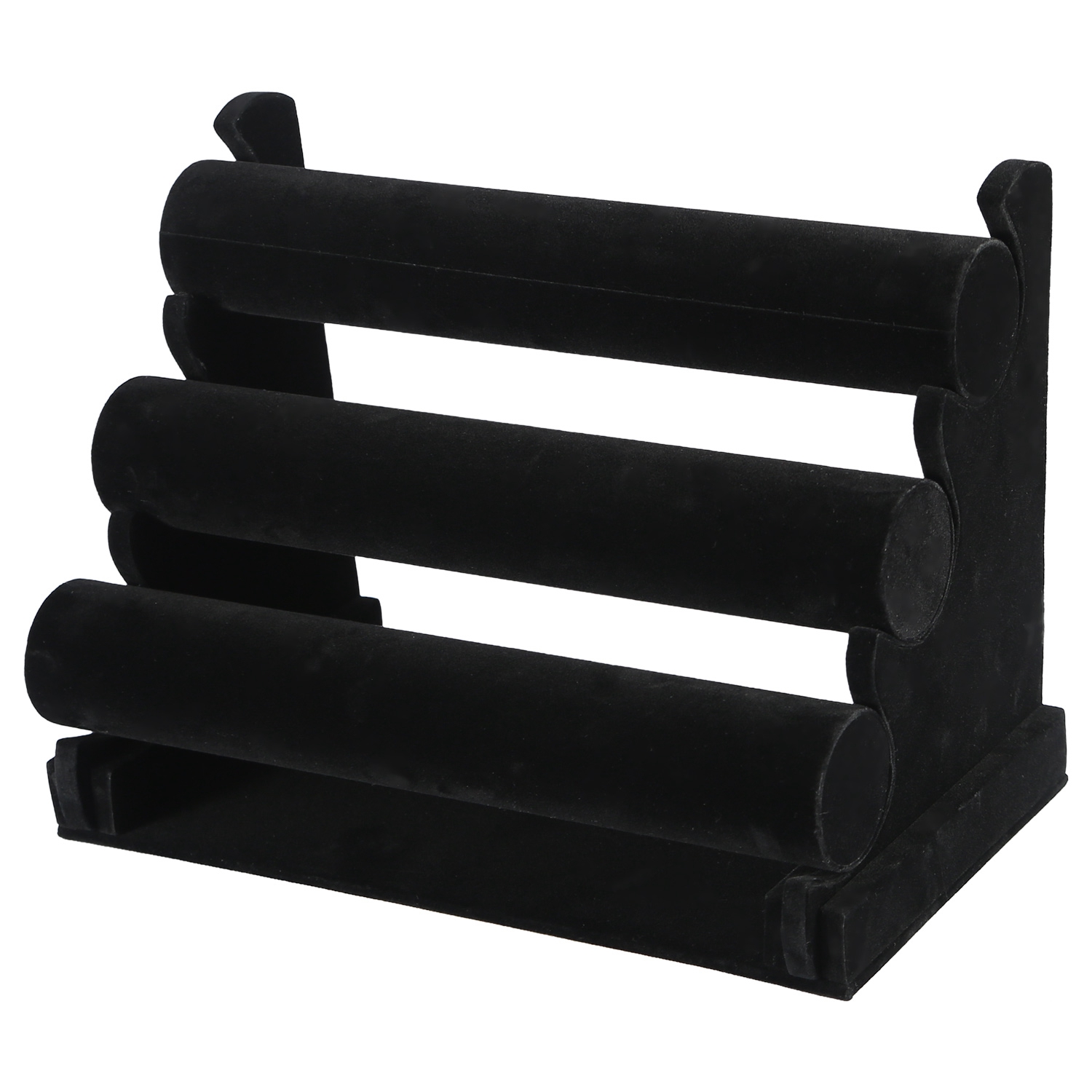 Thoughtfully designed 3-Tier jewelry bracelet display stand organizes and displays your favorite bracelets, necklaces and watches. 3-Tier design keeps all of your jewelry in sight and easily accessible. Its soft velvet padding protects your jewelry from any kind of damage or abrasion. The bracelet holder is ideal for crafting professionals and sellers who wish to display their products. It's also a great addition to storefronts and display cases.