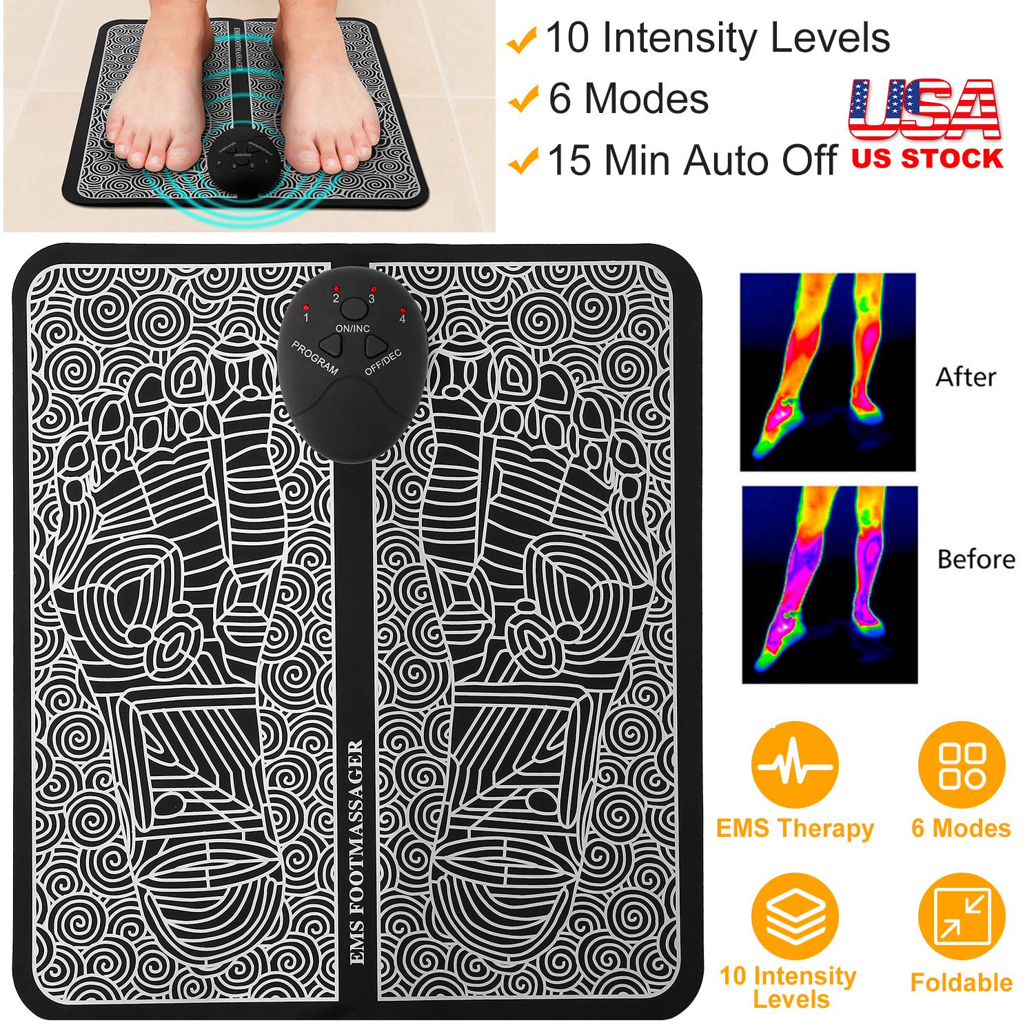 Home > EMS Foot Massage Pad Electric Stimulator Massager Unit Leg Reshaping Muscle Pain Relax Foldable Massage Mat w/ 6 Modes 10 Intensity Levels