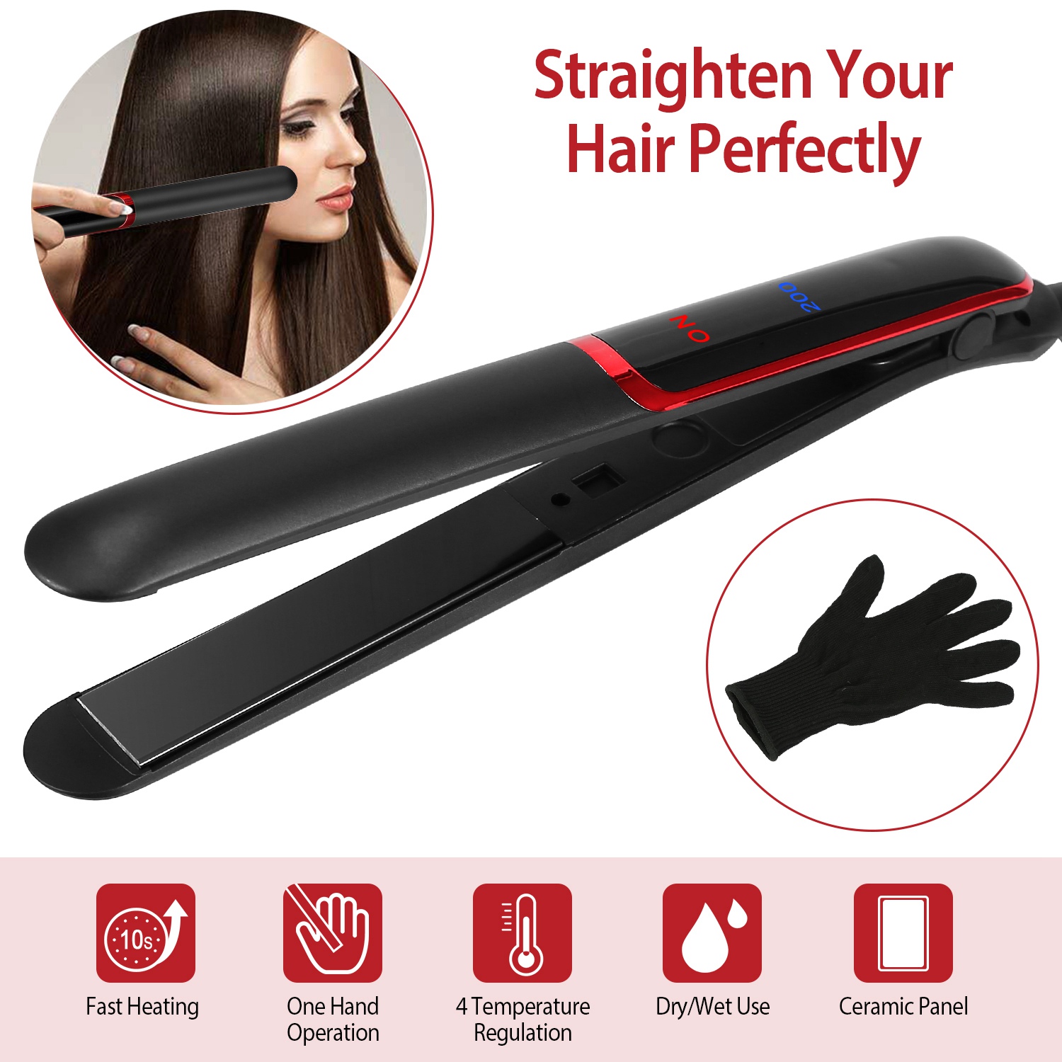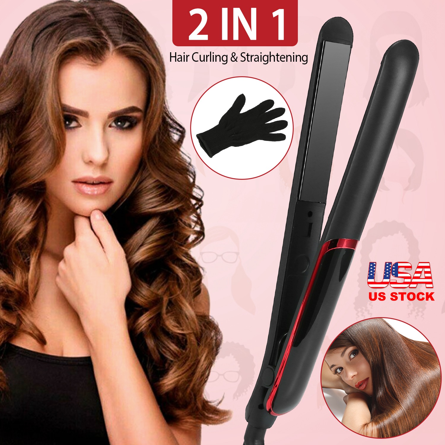 Hair Straightener Curling Iron 2 In 1 Twist Hair Straightener Ceramic Plate Hair Curler w/ Temperature Adjust LCD Display Glove