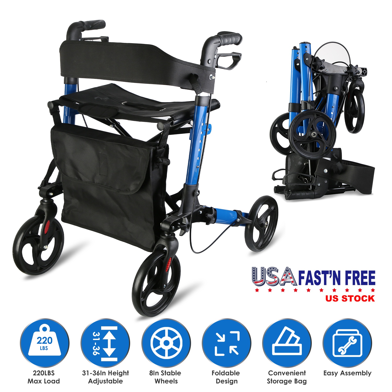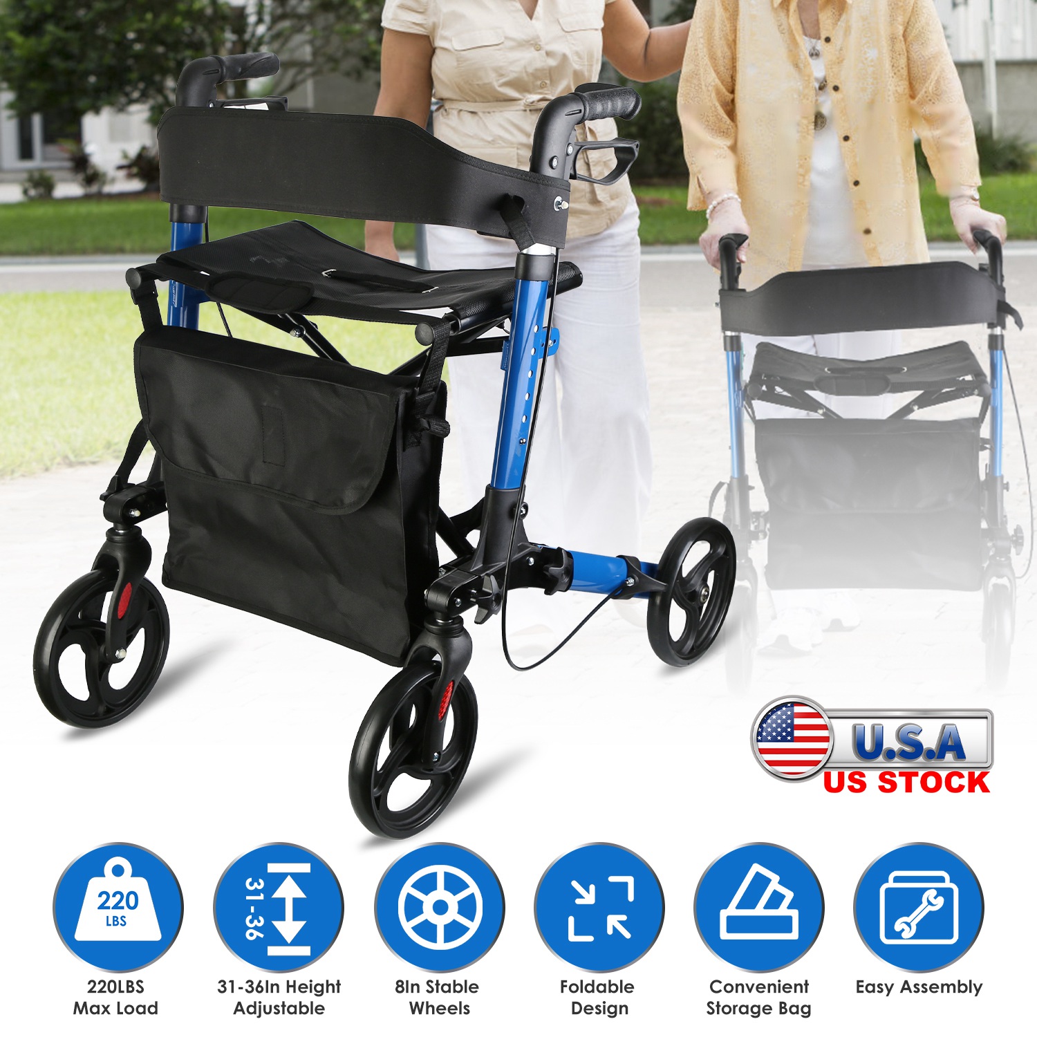 Home > Aluminum Rollator Walker with Seat Backrest Foldable Rolling Walker with 220LBS Max Load 31-36in Adjustable Height 8in Wheels for Seniors Adult Mobili
